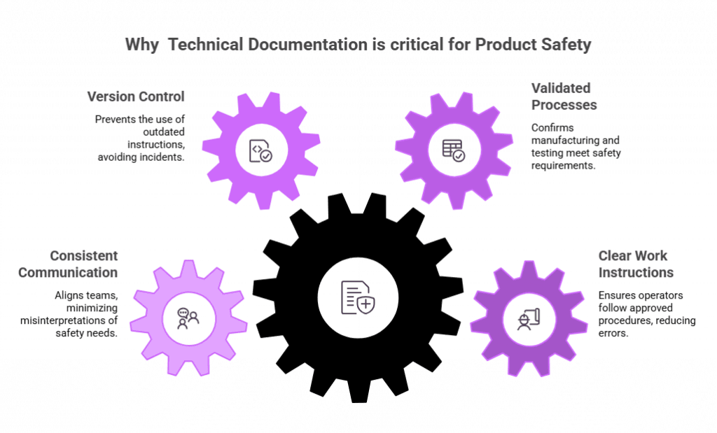 The safety of products is based on clear instructions, validated process and correct communication among the engineering, manufacturing and quality departments. Technical documentation is very important to maintain the consistency of safety requirements during the product lifecycle.